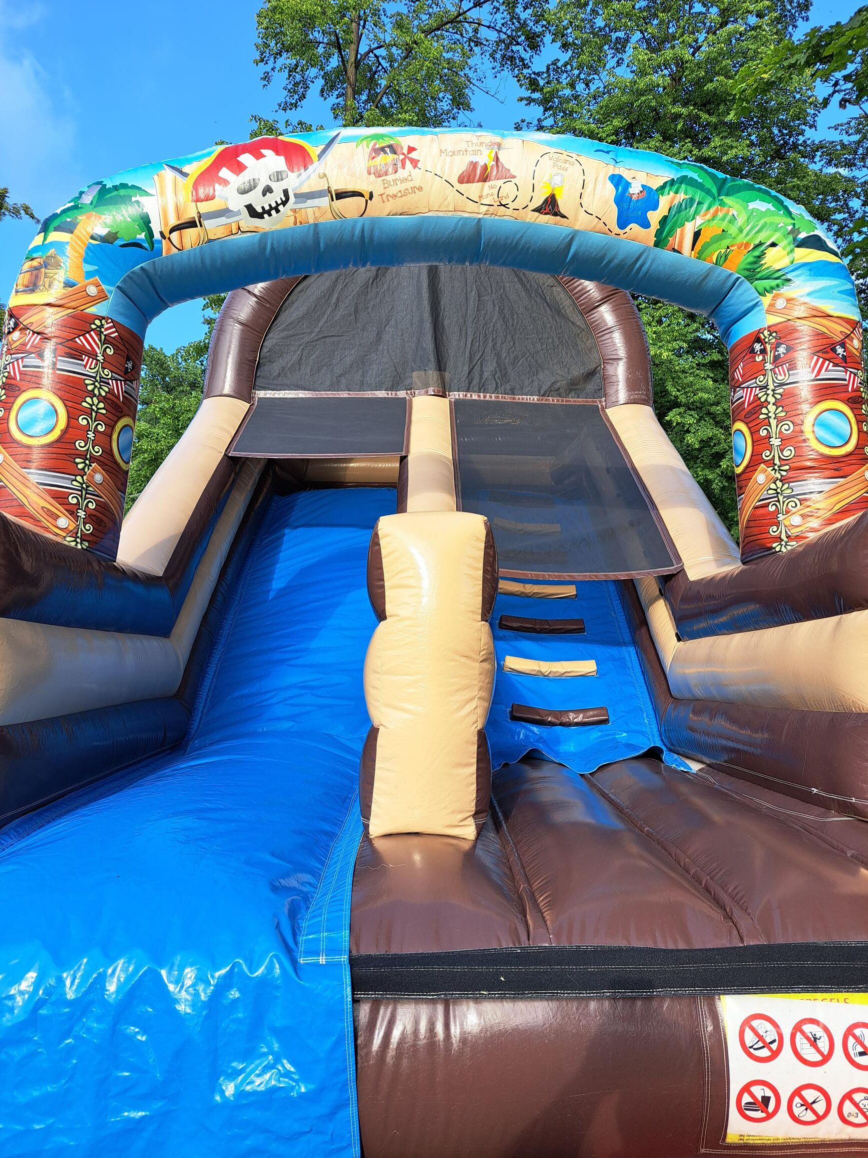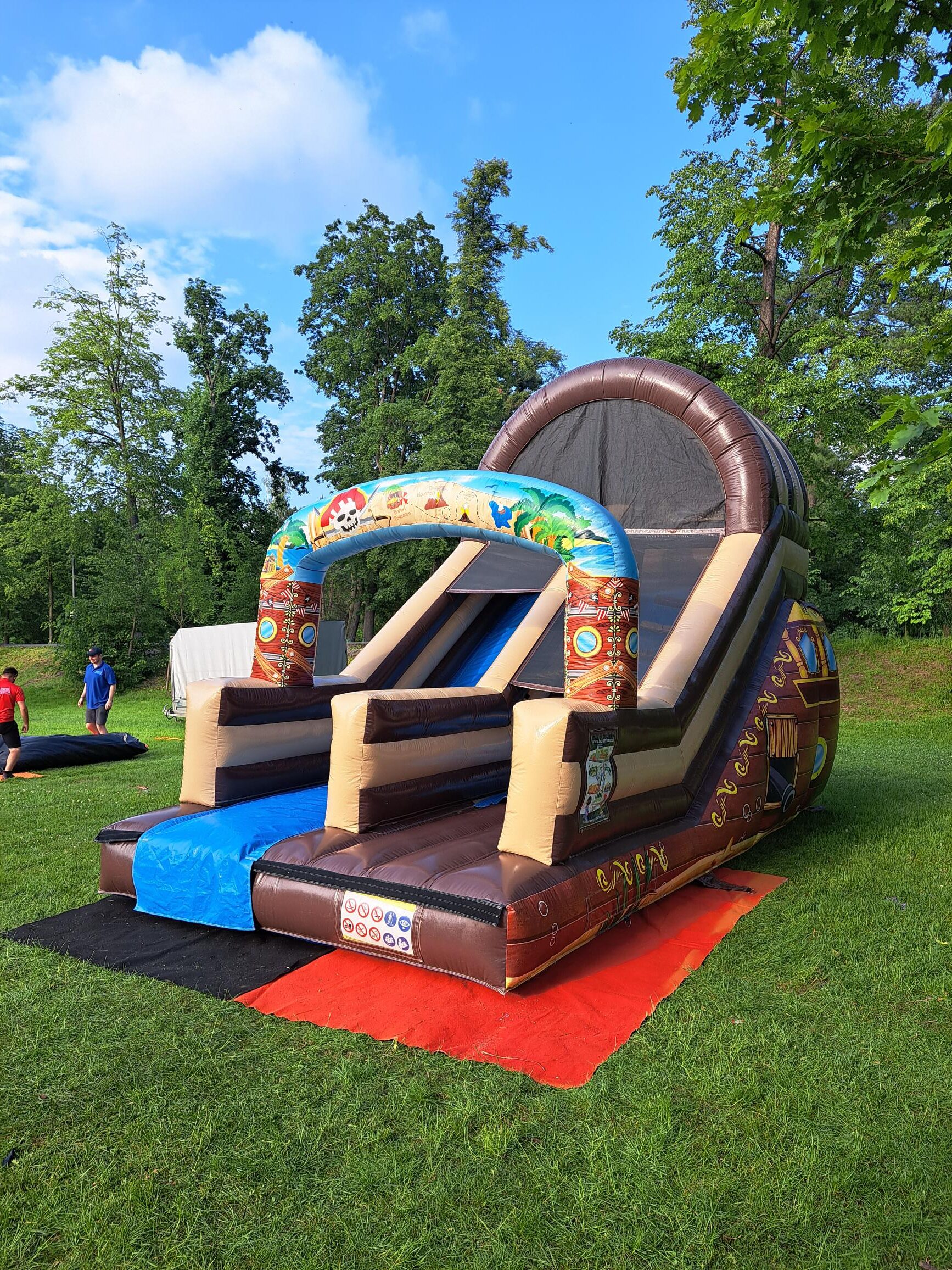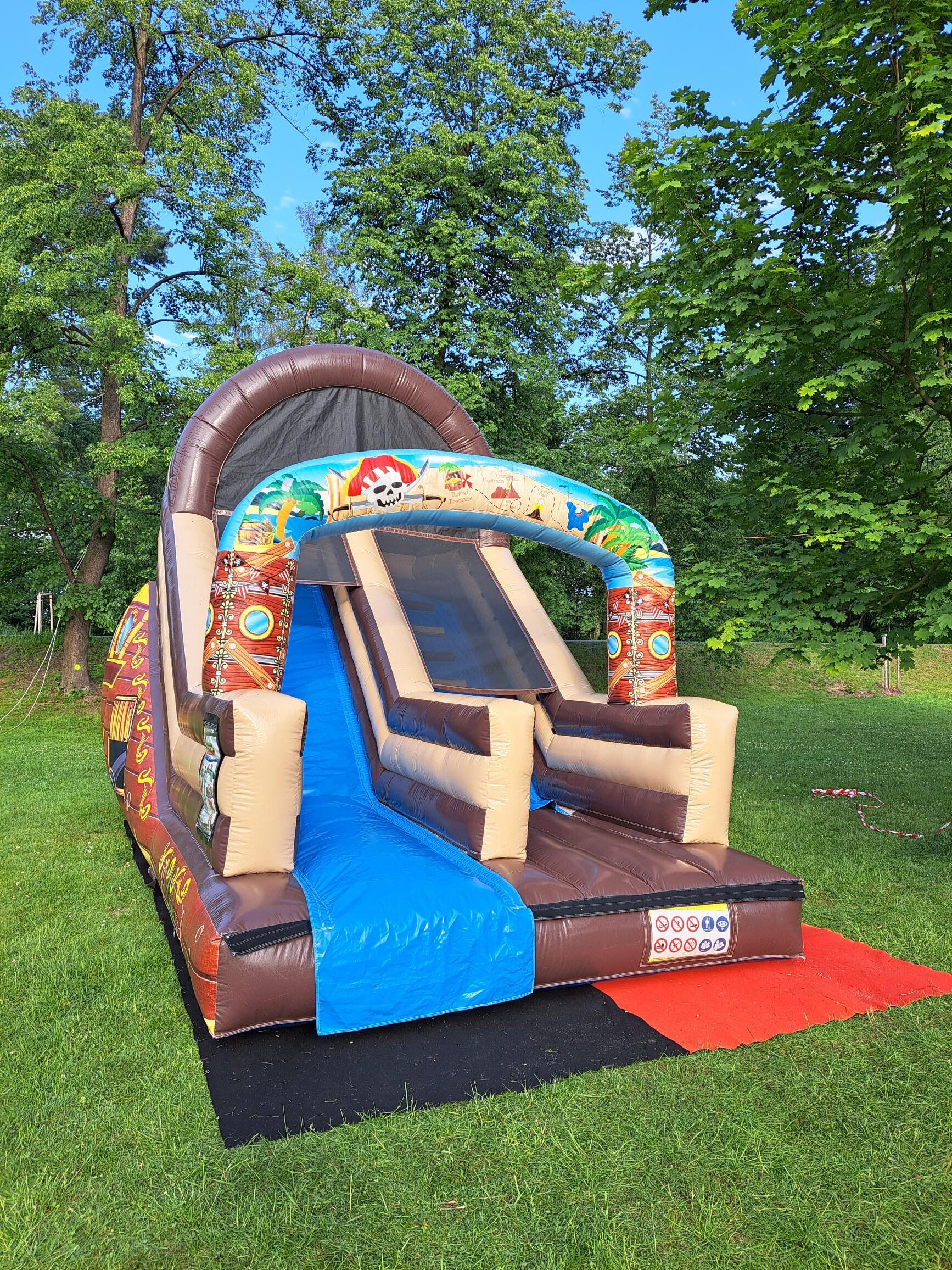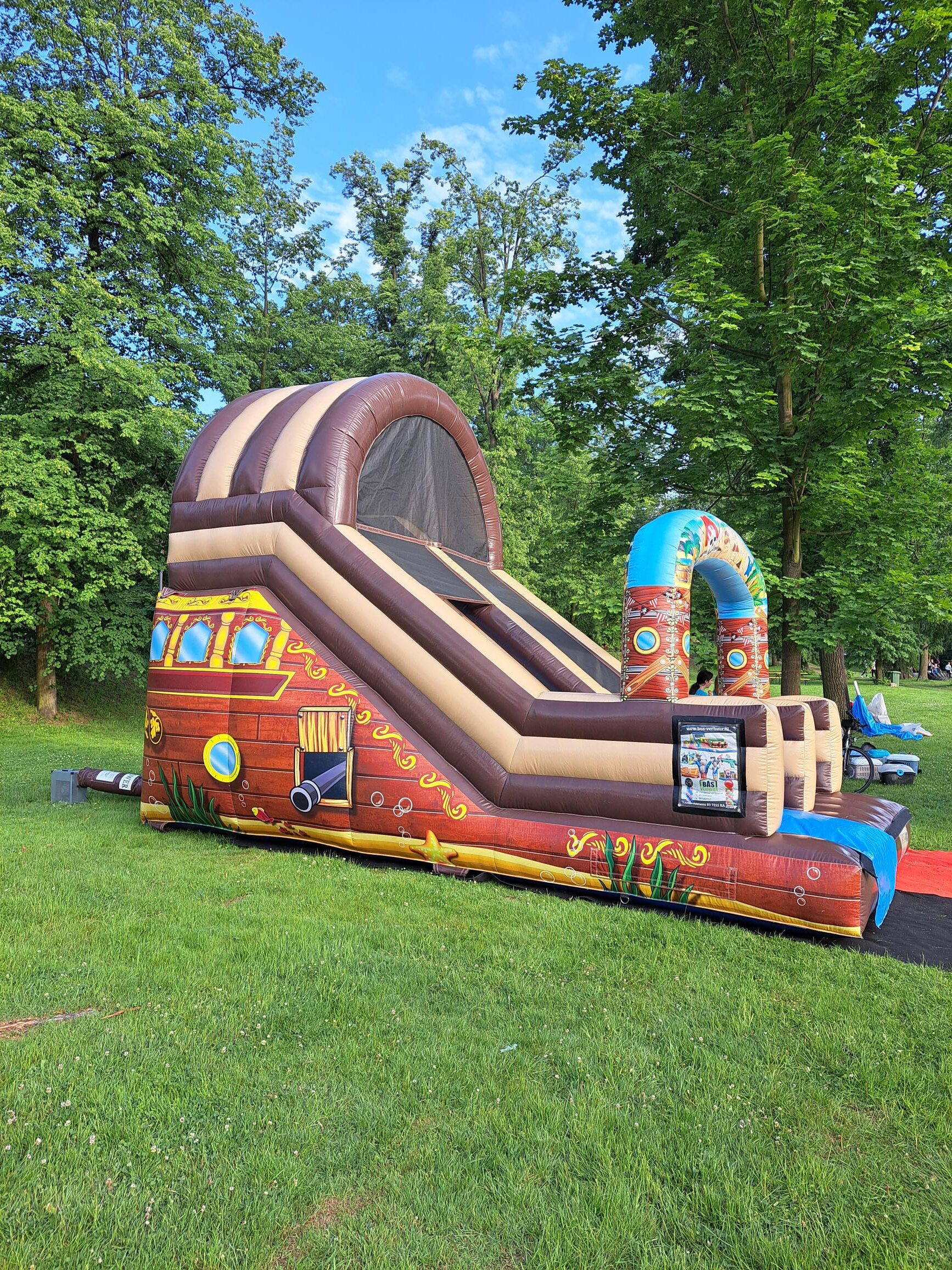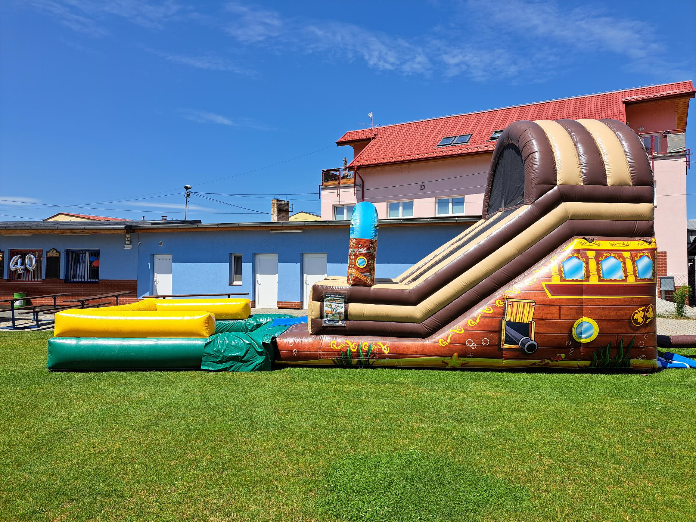 Skluzavka střední velikosti s vyobrazením pirátské lodi.